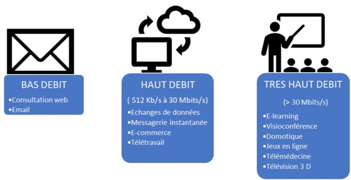 Le Très Haut Débit est un accès internet permettant d’envoyer et de recevoir un grand nombre de données. Il permet notamment :